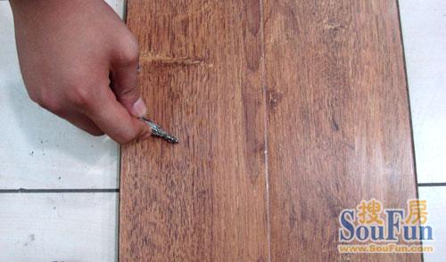 宏耐:強(qiáng)化地板的耐磨性是各類地板中最好的,大家可以在板面上用硬器來回劃擊,看有無明顯劃痕,劃擊聲是否清脆。有明顯劃痕,聲音悶而不脆較次之。一般來說,三氧化二鋁耐磨層應(yīng)付家居使用綽綽有余,相比之下更能