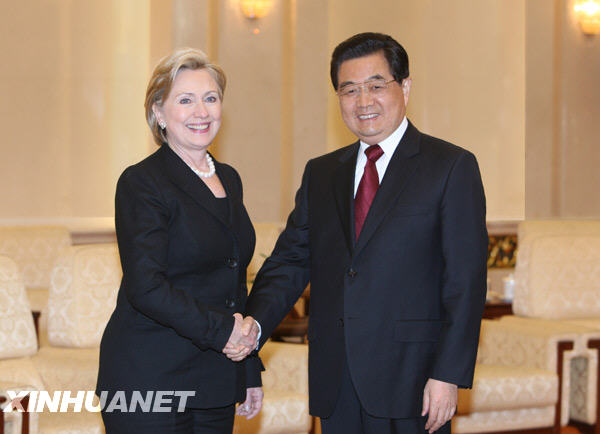 2月21日,國(guó)家主席胡**在北京人民大會(huì)堂會(huì)見(jiàn)美國(guó)國(guó)務(wù)卿希拉里·克林頓。 新華社記者姚大偉攝