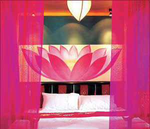 餐桌背后一幅壁畫,暗綠的底色上開了粉盈盈的桃花,娜姆解說:“當初想讓它帶來桃花運?!睕]有理睬我們一臉的錯愕,接著說,“浴室的墻上是牡丹,那表示想追求榮華富貴?!薄艾F(xiàn)在床頭的蓮花,”她的聲音明顯柔和下來,“那是佛祖蓮臺的象征,也是人心靈的最后皈依?!?