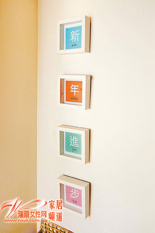 將揮春裱在相框中,既新潮,又不會弄花墻身。