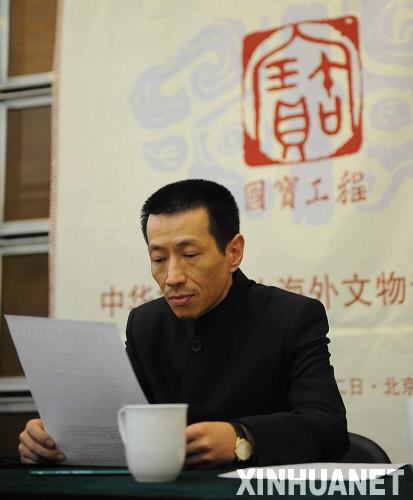 概要: 這是委托人蔡銘超,他是中華搶救流失海外文物專項(xiàng)基金的收藏顧問(3月2日攝)。中華搶救流失海外文物專項(xiàng)基金副總干事牛憲峰3月2日在于北京召開的新聞發(fā)布會(huì)上說,中華搶救流失海外文物專項(xiàng)基金收藏顧問蔡銘超參與了圓明園兔、鼠首在法國(guó)巴黎的拍賣,并成為了最后競(jìng)拍者。