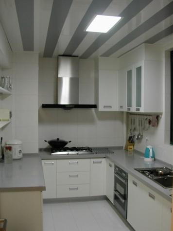 L型:將清洗、配膳與烹調(diào)三大工作中心,依次配置于相互連接的L 型墻壁空間。最好不要將L 型的一面設(shè)計過長,以免降低工作效率,這種空間運用比較普遍、經(jīng)濟。