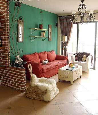 例如墻面為淺藍(lán)色,沙發(fā)則可選深藍(lán)色,抱枕則選用對比的橘色或沖突的紅色或是多色的圖樣。最好再加以一盆綠色喬木盆栽。大地色搭配永不失敗,因其來自自然界。
