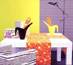 欣賞方案四時,不禁贊嘆設(shè)計者在色彩搭配上的用心。紫色從來都是令人又愛又恨的顏色,大面積使用會讓人產(chǎn)生壓抑感,而小面積使用時,它的獨特個性又讓人在色彩搭配上煩惱不已。此方案為我們提供了一個很好的范例。大面積的明黃色,抹上些許的金黃,點綴幾片深紫,一個華麗而高雅的客廳就這樣設(shè)計出來。