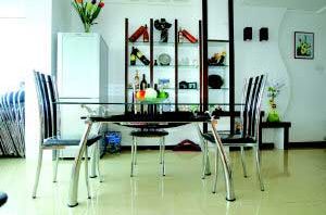 方案五在設(shè)計上突出之處是燈光的設(shè)計與燈飾選擇。在家居設(shè)計中燈光的運用非常靈活。光與影的營造下,家居增添上一份迷人的氣氛。餐廳的一角采用明亮燈飾,氣氛活躍。而客廳則以大小不一的射燈為主,令客廳環(huán)境顯得安詳而幽雅。燈光不僅是用于照明,同時也是家居的配角。俗話說,紅花也要綠葉扶。此方案中選用的臺燈燈座設(shè)計古樸大方,與整個家居裝飾風(fēng)格一致。