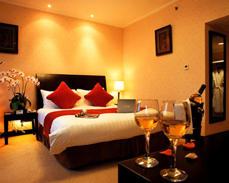 婚床特點(diǎn):最能代表中國傳統(tǒng)婚慶色彩的當(dāng)屬紅色。因此,紅色在這里被運(yùn)用得最多,大紅的高級皮質(zhì)婚床配以紅玫瑰寢具,以及粉紅色窗簾等,雖顯得有點(diǎn)“老套”,但較為符合中國傳統(tǒng)特色和審美眼光,這些在結(jié)婚當(dāng)天還是顯得非常必要的。