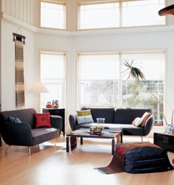 客廳中除了照明是比較重要的一個環(huán)境條件外,還有一個會影響整體環(huán)境的條件,那就是通風。其實一般明廳的窗戶兼有照明與通風的作用,一扇又大又寬的窗戶不僅能讓客廳充滿陽光的溫暖,還能帶進陽光的味道??蛷d中最好不要有較高大的物件擋在窗前或處于空氣流動的主要區(qū)域內(nèi),這樣會影響通風效果。如果客廳是暗廳的話,那么良好的通風只能靠其它房間的配合了,經(jīng)常打開其它房間的房門,制造空氣對流的機會,會加強暗廳的通風效果,也可以使用人工的方式進行客廳的通風?,F(xiàn)在大部分家庭使用的客廳通風設(shè)施應(yīng)該當屬空調(diào)了,大部分人一般只使用空調(diào)來調(diào)節(jié)室內(nèi)溫度,其實目前有許多空調(diào)增加了室內(nèi)空氣換氣調(diào)節(jié)的功能,既美觀,又具有現(xiàn)代感。