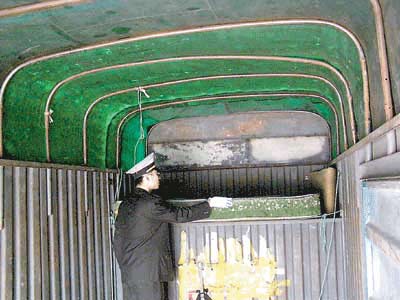 執(zhí)法人員進一步檢查,驚奇地發(fā)現(xiàn)該貨車車廂改裝成了一個小鐵屋,車廂內(nèi)設(shè)有3張席夢思改裝成的6個臥鋪座位。