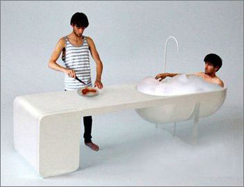 在廚房里面洗澡聽(tīng)起來(lái)有些不可思議,更不用說(shuō)在廚房里洗盆浴了。不過(guò)既然房?jī)r(jià)這么高、住房如此緊張,為了節(jié)約空間又有什么是不可能的呢。