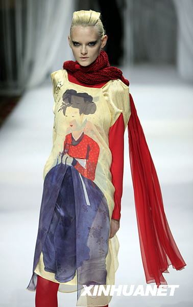 3月5日,在法國巴黎舉行的2009—2010秋冬成衣周上,模特展示韓國設(shè)計(jì)師的作品。新華社記者張玉薇攝