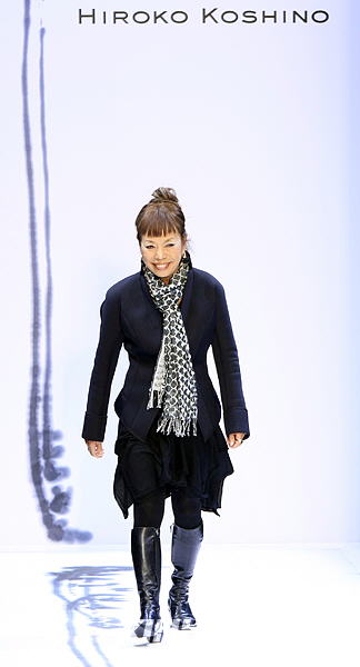 3月5日,在法國巴黎舉行的2009—2010秋冬成衣周上,日本設(shè)計(jì)師在時(shí)裝秀后向觀眾致意。新華社記者張玉薇攝