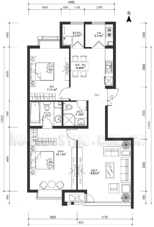 2、兩個(gè)衛(wèi)生間均為暗衛(wèi),不宜于濁氣排放.