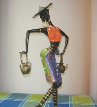 仿古銅藝,個頭都不大,雕工卻是一流,滄桑的臉、古老的鼎、騰飛的龍等等應(yīng)有盡有,雖然是很常見的飾品,用黃銅、青銅雕刻出來卻是“別有一番滋味在心頭”,似乎上面斑斑點點都是歷史的印記??蓴[放在書房的條案上,或是深色的電視柜,無論放在哪里,這類銅藝飾品都能使家彌漫著濃濃的歷史韻味。另一類銅藝飾品則融入現(xiàn)代的設(shè)計元素,如這一套由4件單品組成的“女子樂隊”,4個女子分別演奏不同的樂器,栩栩如生,有了這支女子樂隊,家里就熱鬧得多了。