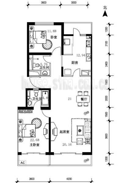 1、房間為長方形,過于狹長,從南走到北,會(huì)造成使用上的不便.