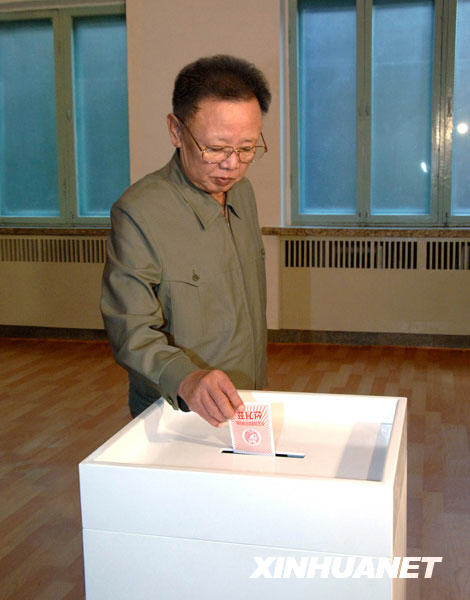 概要: 這張朝中社3月8日發(fā)表的照片顯示,朝鮮最高領(lǐng)導(dǎo)人金正日當(dāng)天參加了第12屆最高人民會(huì)議代議員選舉的投票
