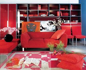 客廳是家中最大的休閑、活動空間,家人相聚、娛樂會客的重要場所,明亮舒適的光線有助于相處中氣氛的愉悅,休閑時視覺減輕眼睛的負擔(dān),在不同情形和時段亦可滿家居裝飾時,色彩是最易出效果、最能表達個性的一個元素,色彩運用恰當(dāng)、搭配合理的居室,比單純用貴重材料簡單堆砌更能令人賞心悅目,而紅色就是其中引人注目的一種。