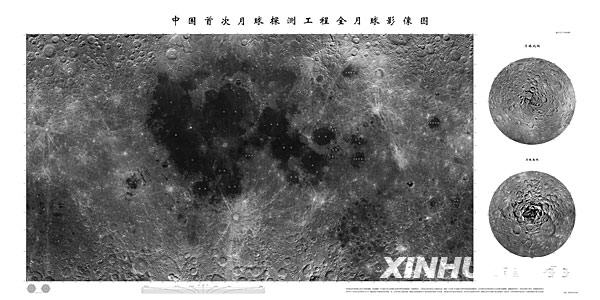 2008年11月12日,依據(jù)嫦娥一號衛(wèi)星拍攝數(shù)據(jù)制作的中國第一幅全月球影像圖正式公布。 新華社發(fā)