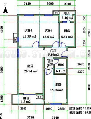 3.兩個(gè)臥室朝北,房間的日光不充足。