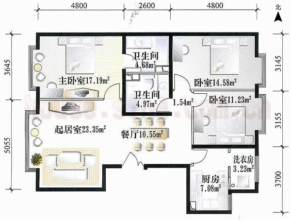 2.主要的活動區(qū)域客廳朝西,房間的日曬強(qiáng)烈。