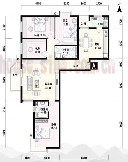 1、整套戶型大部分采光面朝西朝北,有西曬及采暖不足問題