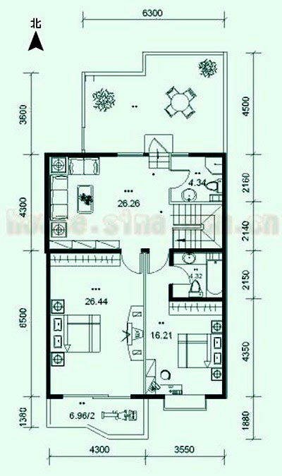 2、頂層擁有大面積露臺(tái),和頂層室內(nèi)空間相結(jié)合,顯出本戶型的檔次;