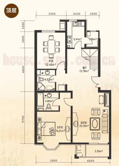 2、樓上樓下雙主臥室南向采光,心情與陽(yáng)光一起開(kāi)放。