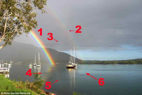 不過,對于其他人來說,在照片中發(fā)現(xiàn)每道彩虹可能需要費點功夫。諾拉是在可以俯瞰卡姆登黑文河的家中拍到這張令人驚嘆的照片的。卡姆登黑文河位于悉尼以北321公里。雖然一些人士可能稱,他們最多能在照片中看到三道或四道彩虹,但諾拉稱,她能夠在照片中看到六道彩虹。諾拉說,她最初認為自己拍到了四道彩虹,將照片送給了英國大氣光學專家萊斯-考利博士,考利博士稱,他在照片中還能看到兩道彩虹。考利博士稱:“多年以來,人們報告稱發(fā)現(xiàn)了許多奇怪的和難以解釋的彩虹,但是由于沒有照片,專家們很難知道人們究竟看到了什么。諾拉的六道彩虹照是非常罕見的。