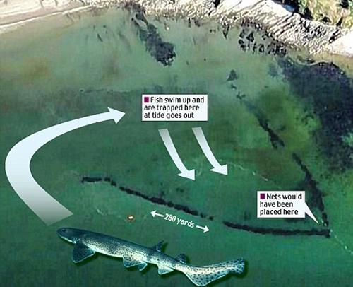 考古學(xué)家說,魚群一旦從V字開口游進(jìn)“陷阱”,退潮時(shí)只能順著海潮從V字“尖端”“脫困”,漁民們只需要在那里張網(wǎng),便能獲得不小收獲。