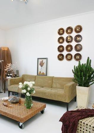沙發(fā)后面的那些都是從外面淘來的,很別致的裝飾,又各自成景。