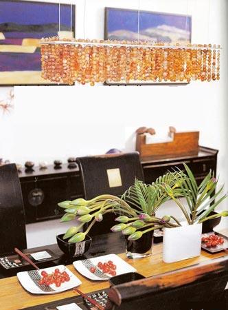 仔細看一下餐具很有日式風格,和上面的吊燈相對應,很有情趣。