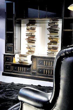 書柜里堆滿了書?不,那只是小魔女的障眼法,那壘成山的書堆原來是一幅貼在書柜里的畫,遠遠看去,還以為是好學(xué)的主人的收藏,或許這只是另一個空間的魔法書,只有擁有了超能力,才能取下觀看吧。