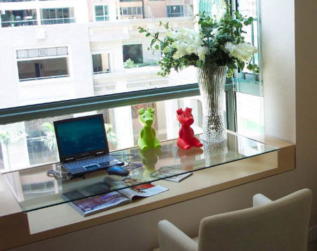 這是實(shí)用與科學(xué)相結(jié)合的方法。平方米數(shù)不多的年輕人的家居可以運(yùn)用。專家說自然光最適合人眼。想想家里哪里容易采到自然光?當(dāng)然非飄窗莫屬啦!而且把桌腿都自然“省”掉了。按照入墻家具的做法做出一個(gè)20至40厘米高的書桌臺面,飄窗書桌可向室內(nèi)延伸,又可在拐角處打造電腦桌、書架、書柜,一個(gè)大一統(tǒng)的開卷天地歸您所有。