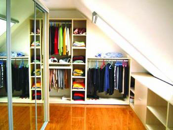 有沒有想過把你的閣樓改造成自己的衣帽間?把自己心愛的衣物寶貝似地“收藏”在樓頂。在天氣陰冷,或是心情低落的下午,你可以一個(gè)人躲在你的“空中衣帽間”里,一件件地試穿各個(gè)季節(jié)的美麗衣服,直到心情放晴。你也可以在朋友聚餐之前、在閣樓上精心地打扮自己。當(dāng)你如公主、王子般款款地從樓梯上走下,心情是否也會(huì)高貴起來?