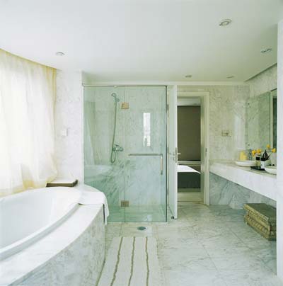 大理石裝潢推薦用地:客廳的地面,電視背景墻、衛(wèi)生間的墻、地面、櫥柜和浴室柜的臺(tái)面。