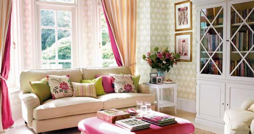 為平淡的空間加入一至兩種主題色彩,能迅速獲得驚艷的效果。有了顏色作為裝飾主線(xiàn),無(wú)需再加入過(guò)多的配飾。如果房間里的輔助色彩用于墻面等大面積裝飾,那么主題顏色的使用面積就要相對(duì)小些。比如這里的粉色沙發(fā)凳,還有雙面窗簾中隱約出現(xiàn)的粉色??傊黝}色不能超過(guò)整體色調(diào)的10%。用靠包、鮮花等與主題色相呼應(yīng),令空間造型更顯完整和專(zhuān)業(yè)。
