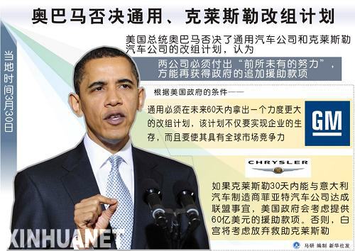 圖表:奧巴馬否決通用、克萊斯勒改組計(jì)劃 新華社發(fā)