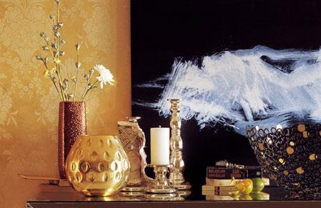 建議避免大面積使用單一的金色裝飾房間,可以作為壁紙、軟簾上的裝飾色;在衛(wèi)生間的墻面上,可以使用金色的馬賽克搭配清冷的白色或不銹鋼。為了讓居室的環(huán)境更有親和力,不妨在角落里擺放些綠色的小盆栽,使房間里充滿情趣