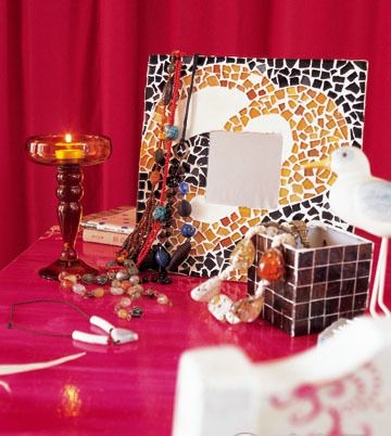 透明的馬賽克可以用來做燭臺(tái),因?yàn)闋T光能夠透過馬賽克朦朦朧朧灑出來,又不似透過普通玻璃那樣直白。還有實(shí)用的紙巾盒、花瓶都可以用馬賽克來制做,一樣的餐桌不一樣的風(fēng)情。