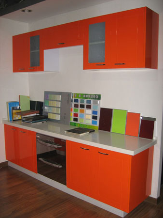 三是要看烤漆。專業(yè)大廠一般都采用高光烤漆的技術(shù),識別這種烤漆的方法也很簡單,可以將其樣品拿到燈下,看燈在樣品板上的投影是否清晰可見,即如果采用優(yōu)質(zhì)的烤漆,是可以作鏡子使用的;另外,好的烤漆耐磨性強,易于清洗,你可以試著用圓珠筆筆筒的一端,在樣品板上刻劃,再用一張干凈的紙擦拭劃痕,看看能否去掉。