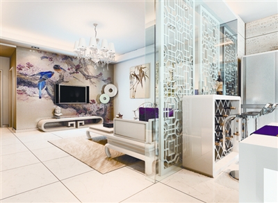 采用下半部封閉、上半部開放或通透式的博古架(俗稱花架子),架子上陳列盆景和工藝品,這樣既能營造藝術氣氛,又能使居室的其他房間在視覺上若隱若現(xiàn),起到隔而不斷的作用。