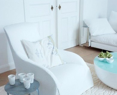 3、清潤(rùn)天藍(lán)色的墻面故意刷成水跡斑斑,灰白色的地面與潔白的沙發(fā)顯得格外清爽,沙發(fā)上淡黃、淡綠、淡青色的幾個(gè)靠墊,為房間平添了幾分活潑。東方特色的紙燈籠透出柔和的白色光霧在地面上投下串串倒影,使地面仿佛成了平靜的水面。清翠的植物立在房間一角,飄散著陣陣幽香,整個(gè)居室的氣氛像春雨拂過般清潤(rùn)不已。