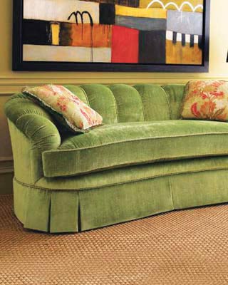 圖解:明年沙發(fā)流行顏色有:蘋果般的草綠色;牛仔布般的灰藍(lán)色;桔子般的橙紅色;咖啡豆般的亮咖色??傊?,多彩繽紛主義在主流中的地位越來越重。