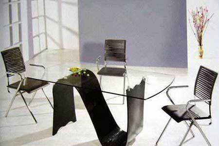點(diǎn)綴:利用玻璃桌面反射的特點(diǎn),改變周圍環(huán)境的色彩和紋理,就能間接地改變餐桌的個性。色澤柔和的餐布和餐具,立即使這款過于理性化的餐桌椅變得溫馨起來。