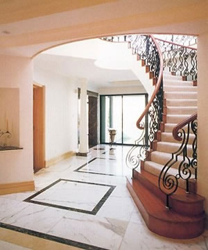 優(yōu)點:具有強烈的動態(tài)美,多在廳堂偏中部位旱地拔蔥。由于不靠墻,圍欄不能借助墻體,需加上透空欄桿,這就更好地表現(xiàn)了樓梯的藝術(shù)之魅。但這種樓梯由于每一段跨度較多,因此安全性較差。有老人和學齡前兒童的家庭,建議慎重使用。