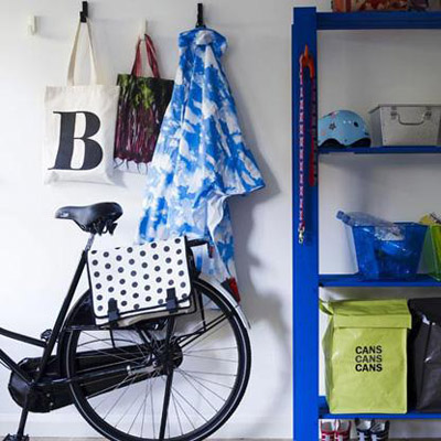 這是一個(gè)色彩繽紛的門廳,時(shí)尚簡(jiǎn)潔的儲(chǔ)物架使這里的色彩一下子明亮起來(lái),而且讓這里有更多的存儲(chǔ)空間。放置些小儲(chǔ)物盒可以分類收納物件,墻上的掛鉤能夠掛些包包和外套,都是十分實(shí)用的。
