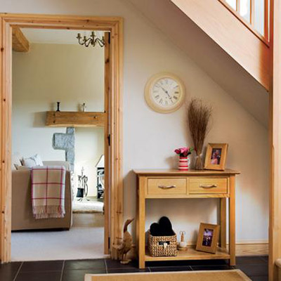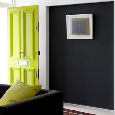 把門粉刷成高雅的酸橙色,讓房間不至于顯得那么擁擠。這個(gè)門廳十分的適合搭配現(xiàn)代起居室,黑色的墻壁和沙發(fā)時(shí)尚非凡。地上的古典風(fēng)格的地毯,配上這些現(xiàn)代元素的家具,風(fēng)格更加的耐人尋味。