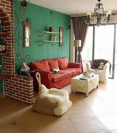 例如墻面為淺藍(lán)色,沙發(fā)則可選深藍(lán)色,抱枕則選用對(duì)比的橘色或沖突的紅色或是多色的圖樣。最好再加以一盆綠色喬木盆栽。大地色搭配永不失敗,因其來(lái)自自然界。