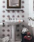 黑白相間的瓷磚,線(xiàn)條硬冷,為了與整體風(fēng)格更為貼近,搭配造型簡(jiǎn)單明了帶有花朵圖案的潔具,呈現(xiàn)時(shí)尚前衛(wèi)的后現(xiàn)代風(fēng)格。
