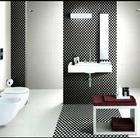 沒(méi)有花哨的設(shè)計(jì),無(wú)論是圓形還是方形都是規(guī)規(guī)矩矩,在黑白兩色間點(diǎn)綴經(jīng)典圖案的金屬瓷磚,硬朗的風(fēng)格讓衛(wèi)浴間也有了性別取向。