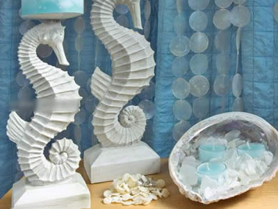 透明的小片浴簾和貝殼里的燭光,是這里別出心裁的亮點,每個來到這里的人,都會想象這里屬于自己。新奇的海馬,有點現(xiàn)代,又有些復(fù)古,是個雙重風(fēng)格的蠟燭臺。讓浴室的主人可以深切的體會到熱帶海洋的香味。